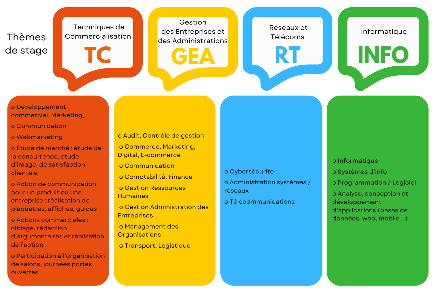 Thématiques des stages par formation