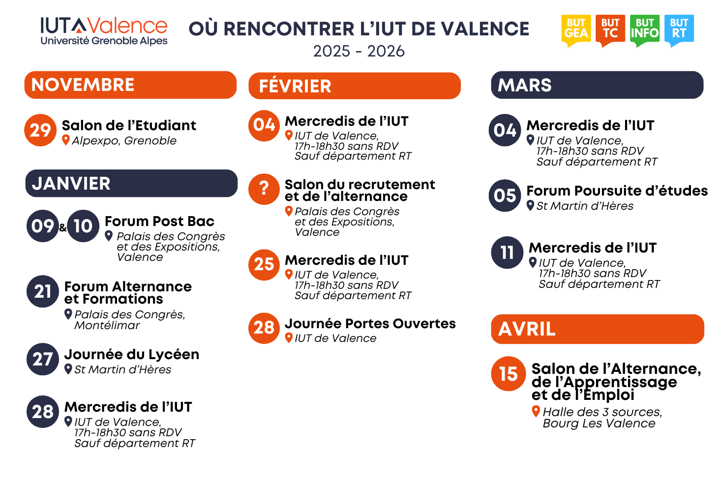 Voici toutes les dates et événements où nous trouver durant l'année universitaire 2025-2026
