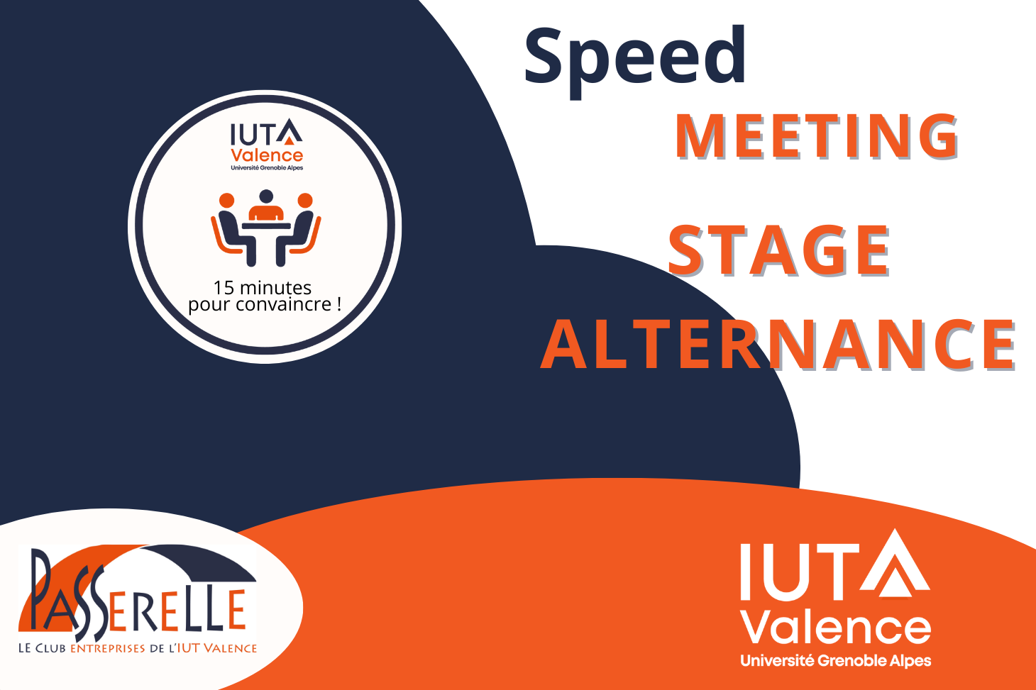 Prochaine rencontre le jeudi 5/02 à  l'IUT de Valence, de 13h à 18h selon vos disponibilités, les étudiants en recherche de stage auront 15 minutes pour vous convaincre.